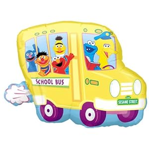 This balloon features Grover, Ernie, Bert, Elmo, Cookie Monster, and Big Bird all riding on a school bus.